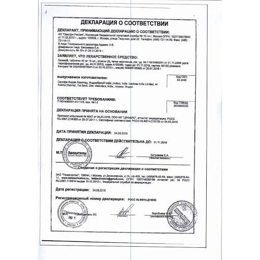 1 таблетка содержит фуросемида – 40 мг.