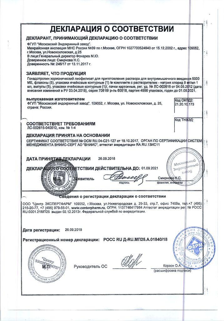 Клинико-фармакологическая группа: Рекомбинантный человеческий хорионический гонадотропин.