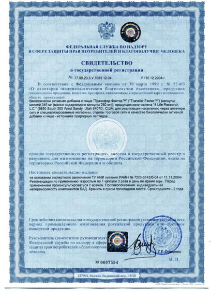 Трансфер Фактор - это добавка, полученная из молозива млекопитающих (густой желтый секрет молочных желез, который организм животного начинает вырабатывать на 20-й неделе беременности - у человека). Transfer Factor содержит модифицированную состав, из которого удалены почти все компоненты, за исключением иммунных медиаторов, укрепляющих иммунную систему. По сравнению с материнским молоком, молозиво исключительно богато белками, витамином А, натрием и хлоридами и, что наиболее важно, иммуноглобулинами типа А, которые в основном защищают слизистые оболочки живых организмов от бактерий или вирусов в пищеварительном тракте, дыхательных путях и мочеполовой системе.