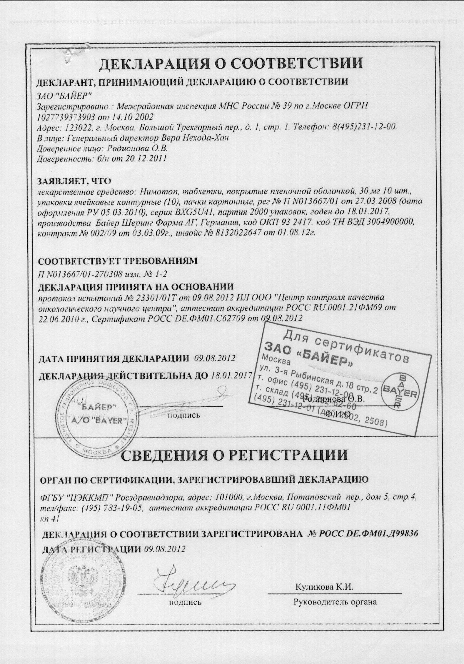 Нимотоп - таблетки, покрытые пленочной оболочкой, 30 мг. По 10 табл. в блистере. 3 или 10 блистеров помещены в картонную коробку.