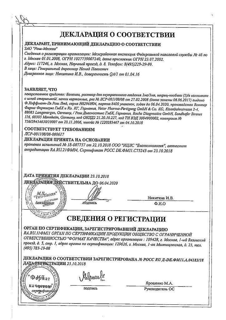 Бонвива раствор для в/в введения несовместим с кальцийсодержащими растворами и другими растворами для в/в введения.