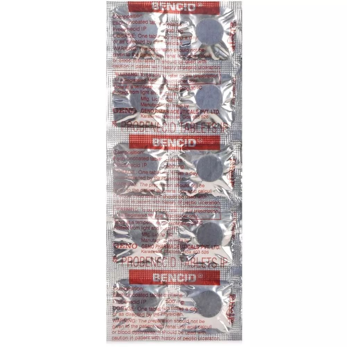 Показания. Купить Бенемид (аналог Bencid) рекомендуется для лечения подагры при отсутствии гиперуратурии. Также медикамент эффективен в терапии первичной или вторичной симптоматической гиперурикемии без почечной недостаточности.