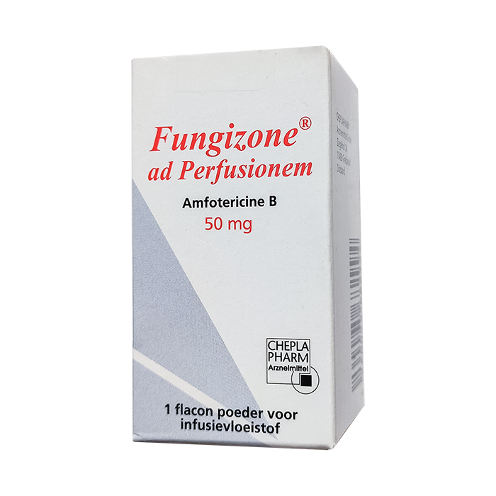 Флаконы, содержащие 50 мг амфотерицина В, в картонной коробке.