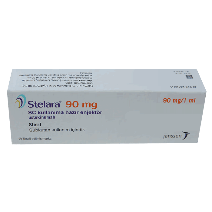 Стелара представляет собой полностью человеческие моноклональные антитела класса IgG1k с молекулярным весом около 148600 дальтон, продуцируемые рекомбинантной клеточной линией и проходящие многоступенчатую очистку, включая инактивацию и удаление вирусных частиц. Стелара обладает высокой специфичностью к субъединице р40 интерлейкинов (ИЛ) человека ИЛ-12 и ИЛ-23.