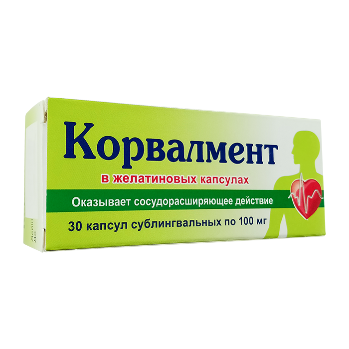 Применение. Капсулу Корвалмент необходимо держать под языком, пока она полностью не растворится. Разовая доза для взрослых - 1 капсула (100 мг). Максимальная суточная доза - 6 капсул (600 мг).
