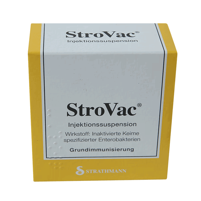 Стровак — вакцина, содержащая штаммы бактерий, часто вызывающих цистит и другие ИМП. Принцип действия схож с прививками, которые делают ребенку для предупреждения различных, опасных для жизни болезней (полиомиелита, определенных разновидностей менингита, столбняка, дифтерии и т.д.). Это препарат немецкого производства, который применяется для профилактики рецидивов бактериальной инфекции в мочевых путях. Эффективность использования составляет 80-90%.